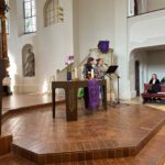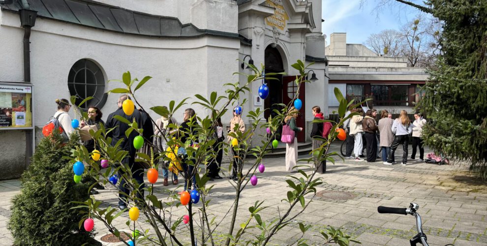 Schon auf dem Weg durch den Park zur Kirche gab es Gelegenheit zu suchen und zu finden, nämlich kleine Schokoeier, die am Wegrand versteckt waren. Natürlich ging es dann um mehr als um Schokolade. Sie bringt zwar einen kleinen Genuss, gegen den Druck, unter dem doch viele Schüler*innen in der letzten Schulphase vor dem Abi leiden, kann sie aber nicht nachhaltig wirken. Es ging um Ressourcen, die man gerade dann in sich entdecken und aktivieren kann, wenn der Stress am größten ist.