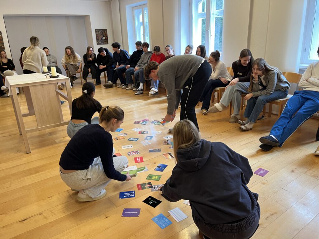 St. Ottilien ist ein besonderer Ort. Das wird schon beim etwa 20minütigen Spaziergang vom Geltendorfer Bahnhof über die Feldwege deutlich: früh sichtbar ist der wuchtige Kirchturm und mit dem Vorbeigehen am Buchladen, an der Voliere und den Gästehäusern ist man in einer ganz eigenen Welt. Zum dritten Mal waren wir hier mit Schüler:innen der 11. Klassen zu Gast. Doch nach etlichen Besinnungstagen, den HeartBeadsDays, einem Format unseres ehemaligen Kollegen Marco Kargl, wurden daraus nun die Orientierungstage, gestaltet von vier Referent:innen des Studienzentrums für evangelische Bildungsarbeit Josefstal. Mit zwei selbst gewählten Schwerpunktthemen beschäftigten sich die 47 Schüler:innen: Freundschaft & Vertrauen und Selbstbild & Fremdbild. Die Perspektiven auf viele weitere Orientierungstage sind hiermit eröffnet!