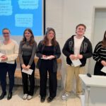 Elisa Schötz, Antonia Mark, Christina Brida, Tim Kanis und Hannah Kuhn präsentierten die Früchte ihrer ersten wissenschaftlichen Arbeit, Pflichtprogramm der 13. Klasse. Der Begriff Früchte ist hier übrigens richtig am Platze, so erklärte die Moderatorin des Abends Daniela Strümpler: Im Wort „Seminar“ steckt der Samen, das Säen. So ist ein Seminar gleichsam eine Pflanzschule und mit den entstehenden Arbeiten entwickeln sich auch die Gärtner*innen immer weiter.